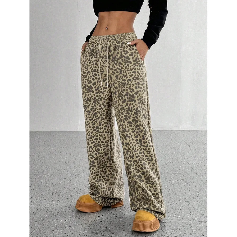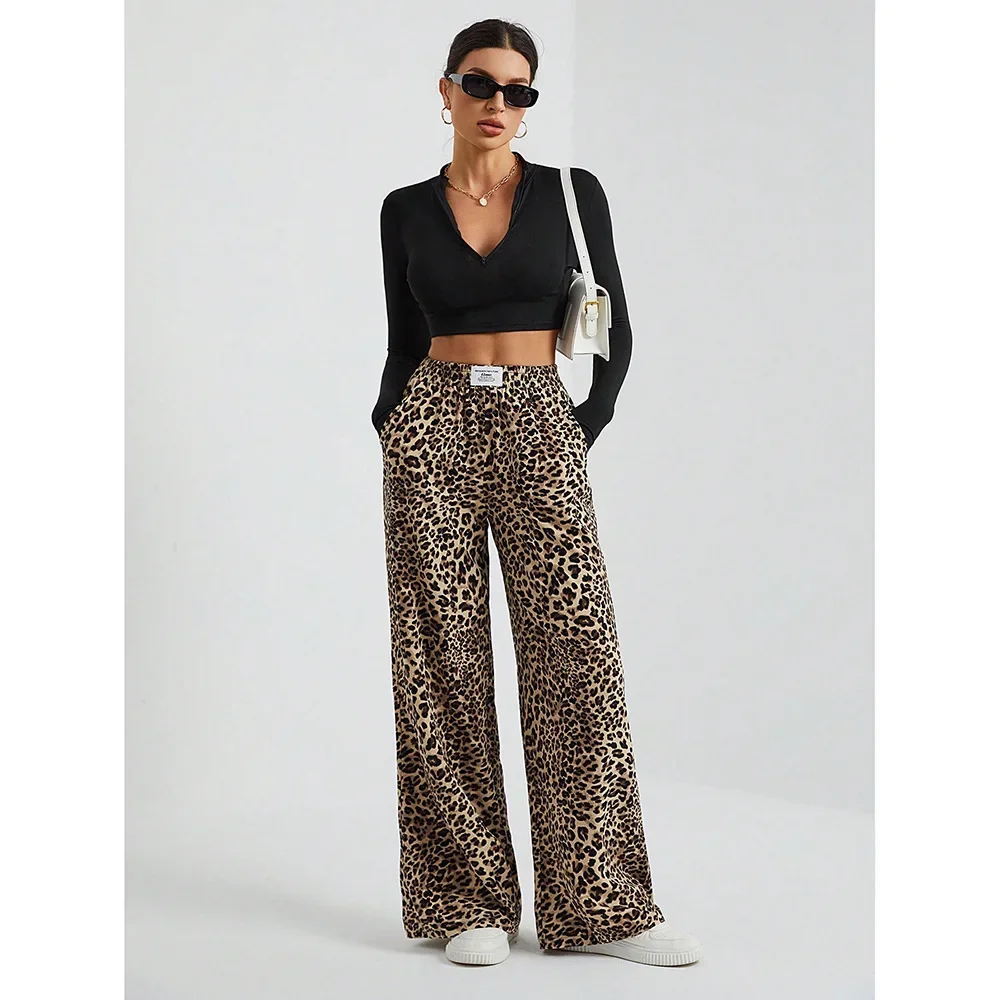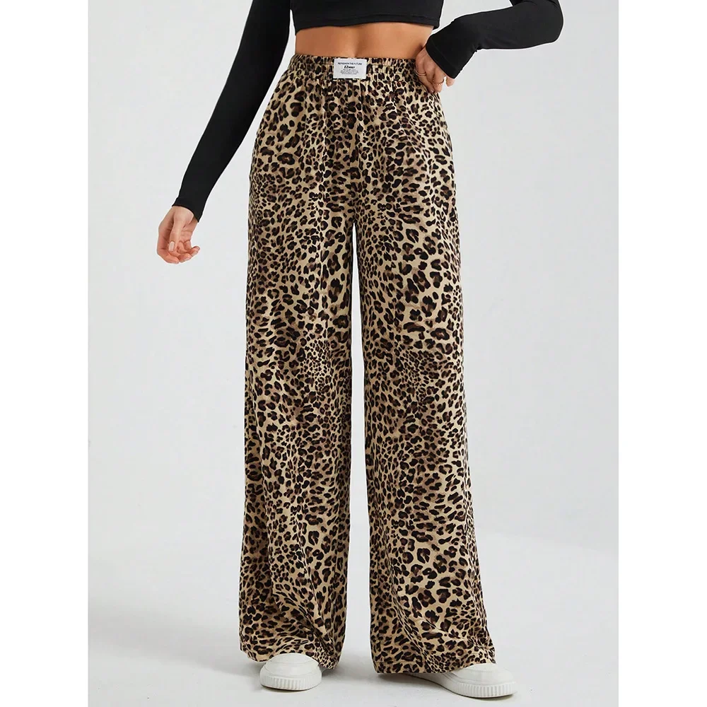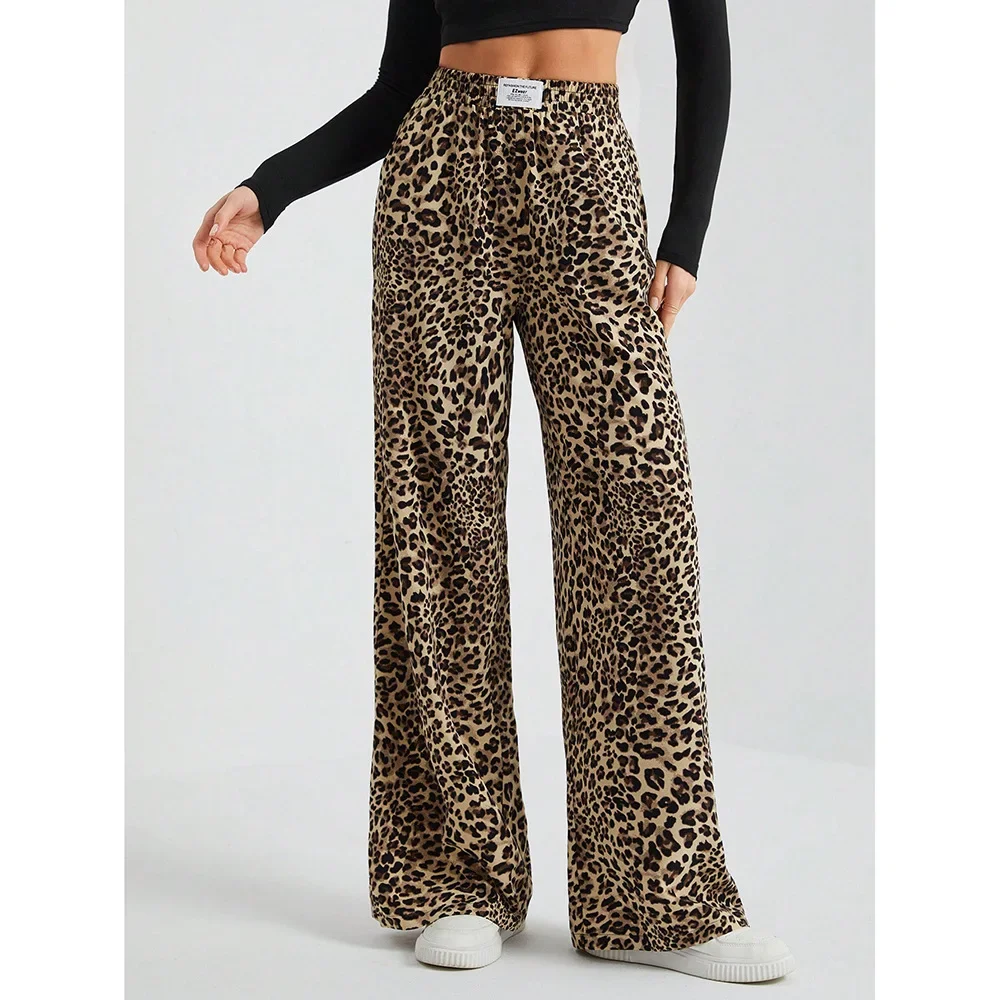 Trendy Classic Leopard Print Loose-Fit Wide-Leg